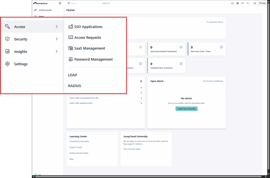 Your time is valuable, and every click matters when you’re managing IT. We know that as your company grows, so do your daily tasks. That’s why we’ve redesigned how you navigate the JumpCloud Admin Portal.