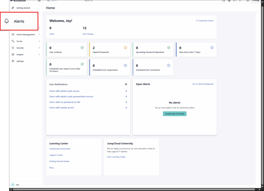 - Alerts: Alerts is now a dedicated, easy-to-spot Left Nav menu item.
