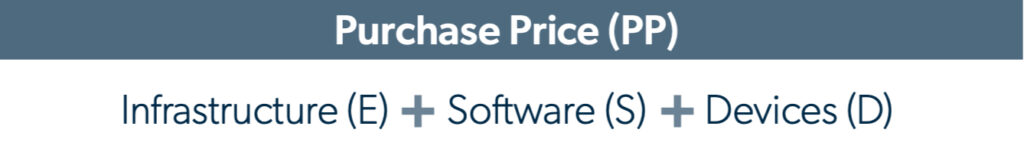 Purchase Price (PP) = the direct costs that you pay at the time of acquiring the new solution.