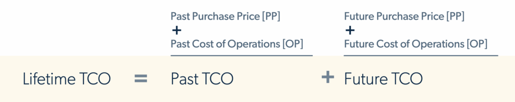 Lifetime TCO includes both past and future costs. However, there are reasons you may calculate just past or just future costs. For example, if you want to know how much your organization has spent on its servers, you would include the purchase price and past operational costs, but no future costs.