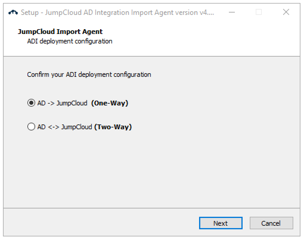 The main steps you will take to install and configure ADI for a one-way sync from AD to JumpCloud are: