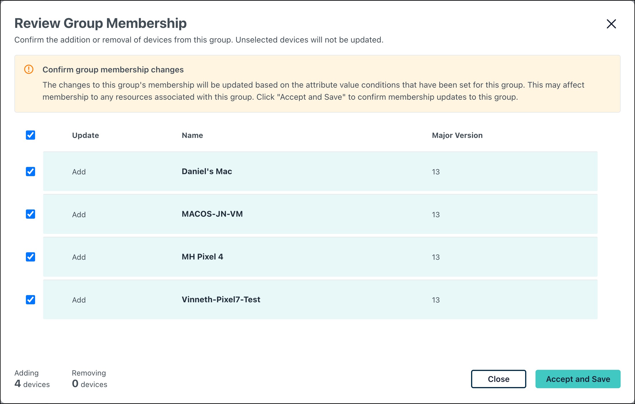 - Click Accept and Save when finished to update the group.
