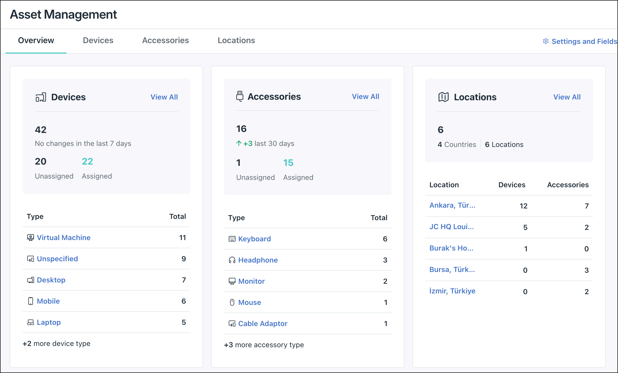 - Device Management Integration: Asset Management synchronizes with Device Management, automatically adding and updating managed devices.