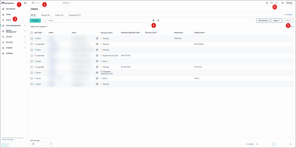 Use the left nav to access your JumpCloud resources: