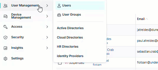 Go to User Management to manage and view information about your JumpCloud users and user groups.