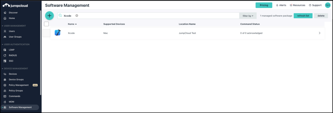 You can easily manage software applications for your macOS Mobile Device Management (MDM)-enrolled devices with JumpCloud’s Software Management. Managing software apps saves you time and ensures that your users can access the apps they need. You can also reclaim licenses that are no longer used to control software costs.