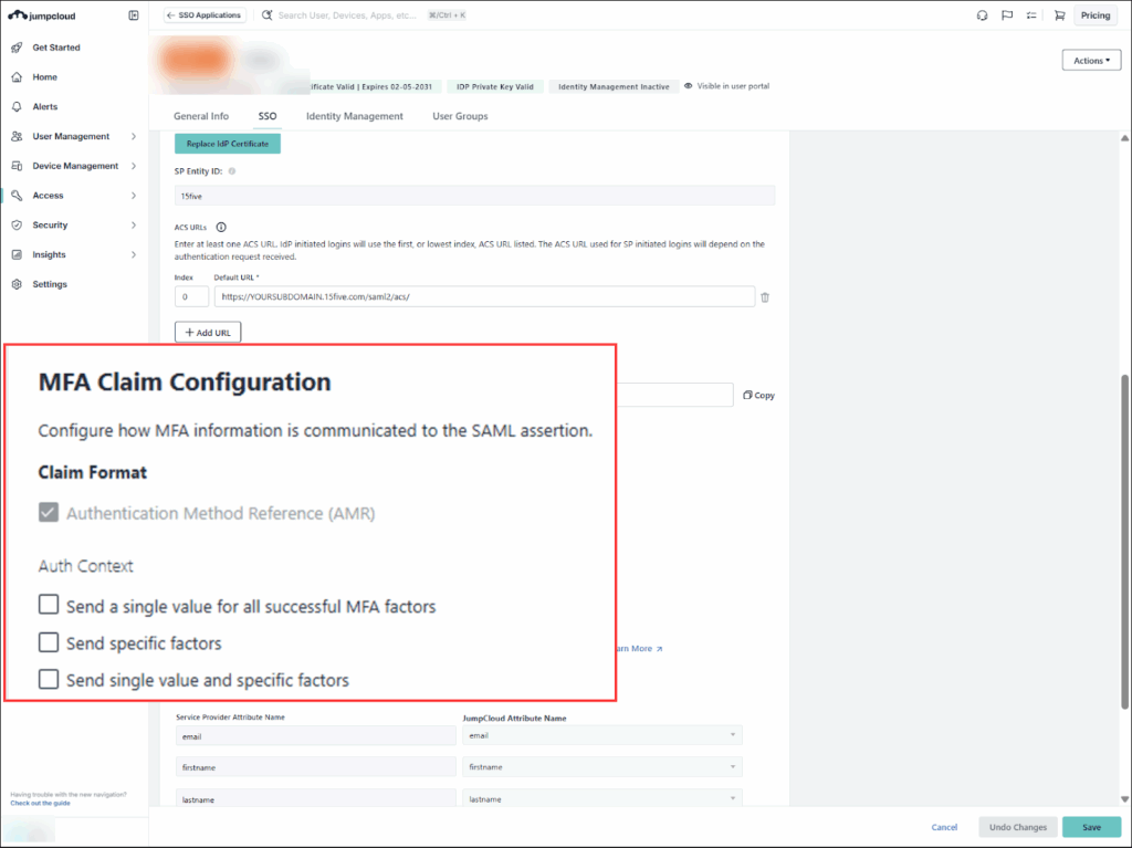 Configuring MFA Claims for JumpCloud SSO Connectors