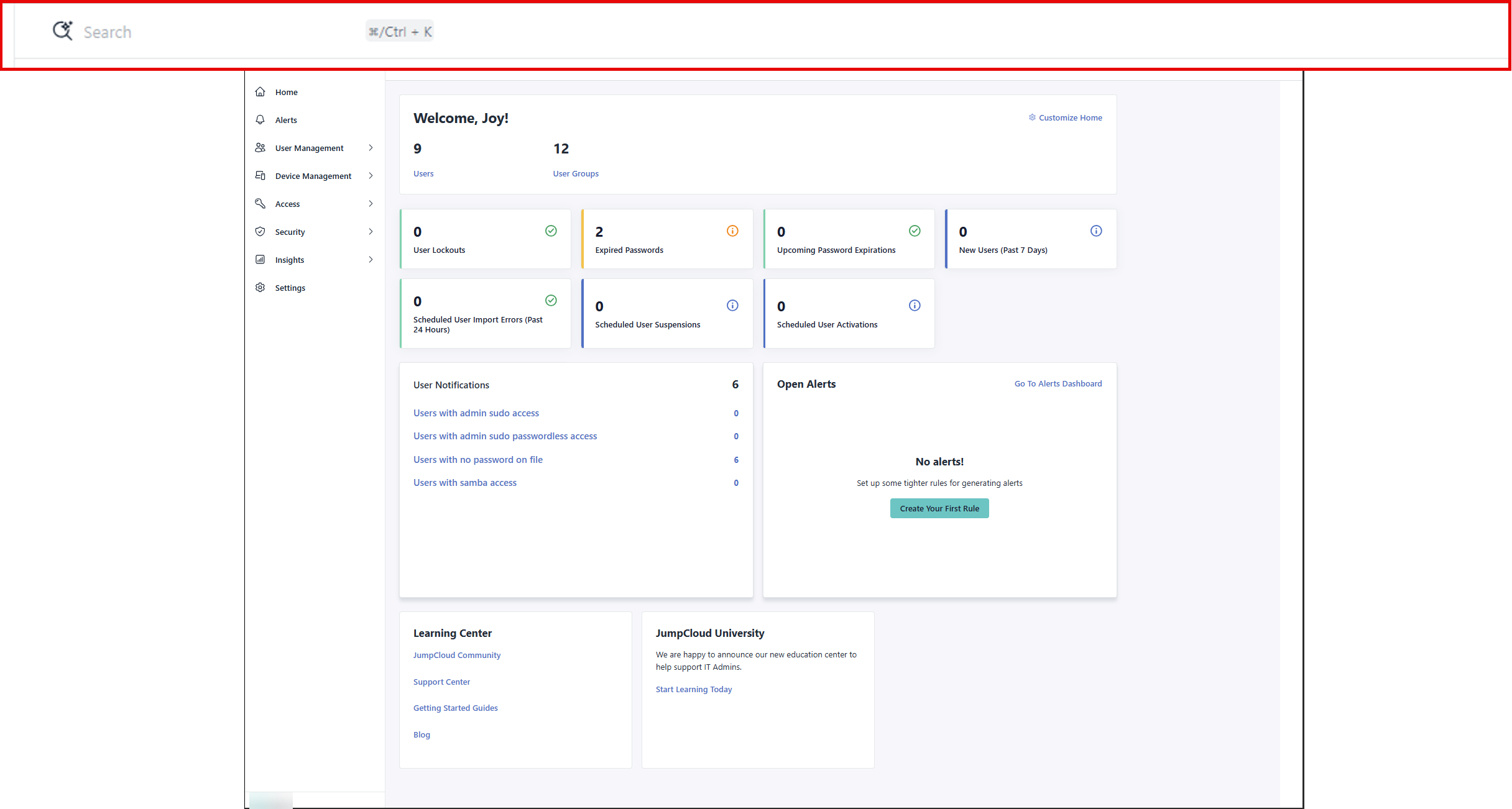 When the Left Nav is collapsed, the Collapse Menu only activates when you hover over it - otherwise it shows the JumpCloud logo.