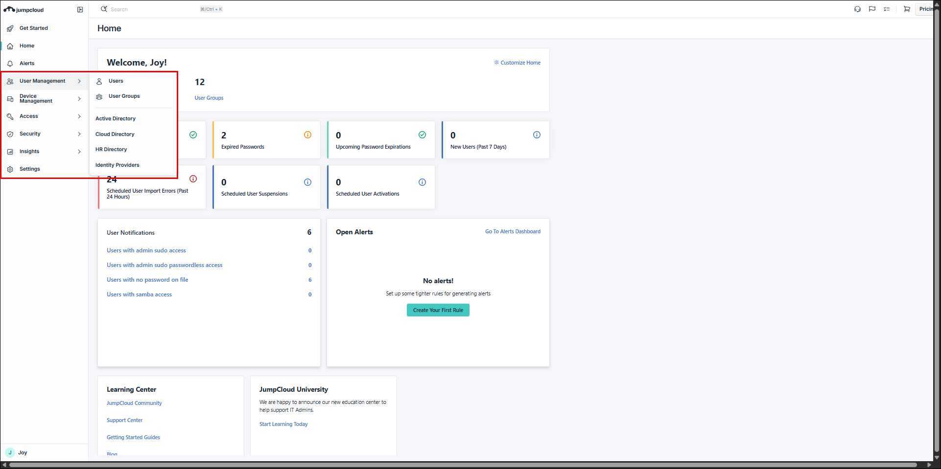 Directory Integrations removed from the Left Nav. Active Directory, Cloud Directory, HR Directory and Identity Providers moved to User Management.