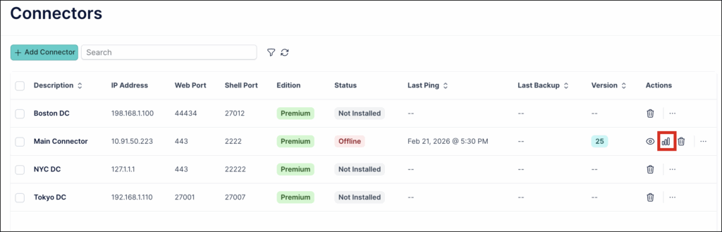 - Go to Administration > Connectors. A list of available connectors is displayed.
