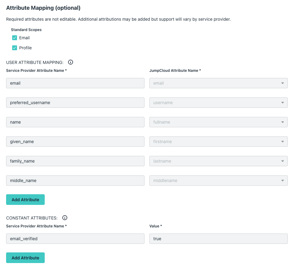 - Attribute Mapping - select both Email and Profile