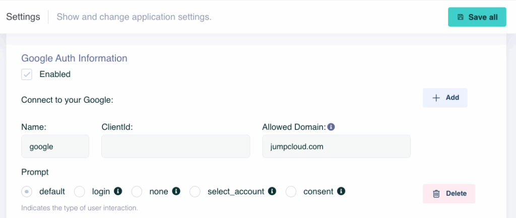 - Allowed Domain - enter the Google domain that should be allowed (e.g., yourcompany.com)