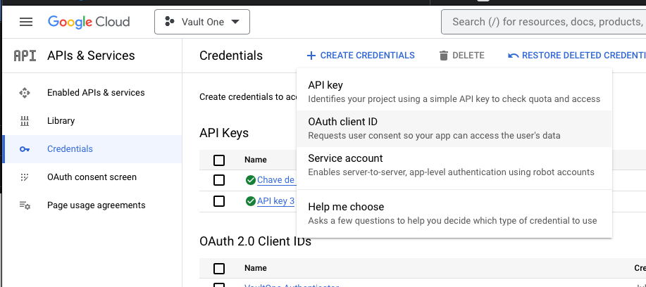 - In your Google Cloud Platform, go to to the left-hand menu > APIs & Services > Credentials.