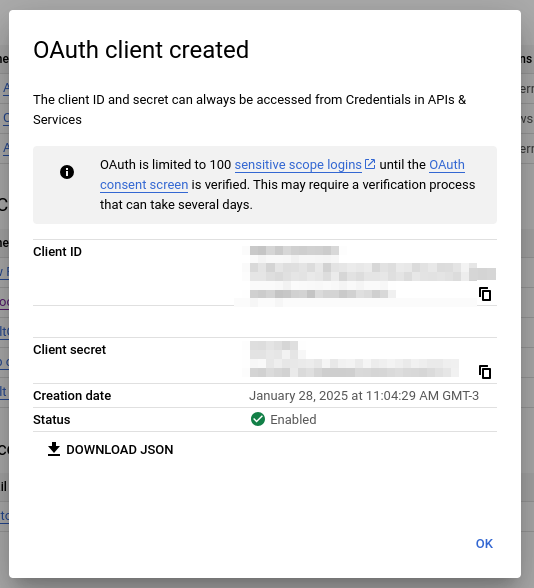The Client ID and Secret (token) may only be shown once. Copy them to a secure location, like the JumpCloud Password Manager, for future reference.