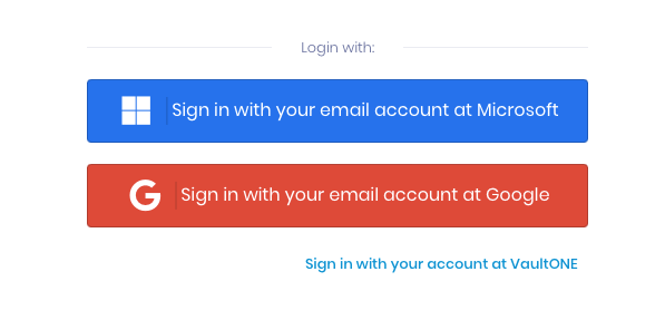 Once the setup is complete, the Sign in with your email account at Google button will appear on the VaultOne login screen. Users from the allowed domain will be able to authenticate using their Google accounts.