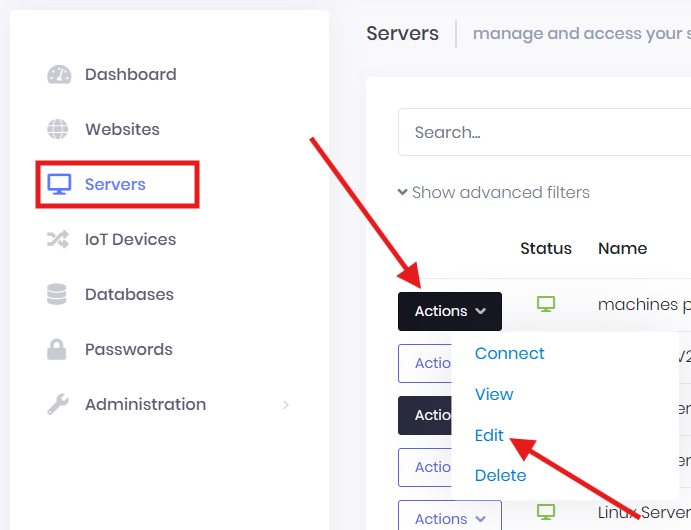 - Go to the Servers menu in your VaultOne portal.