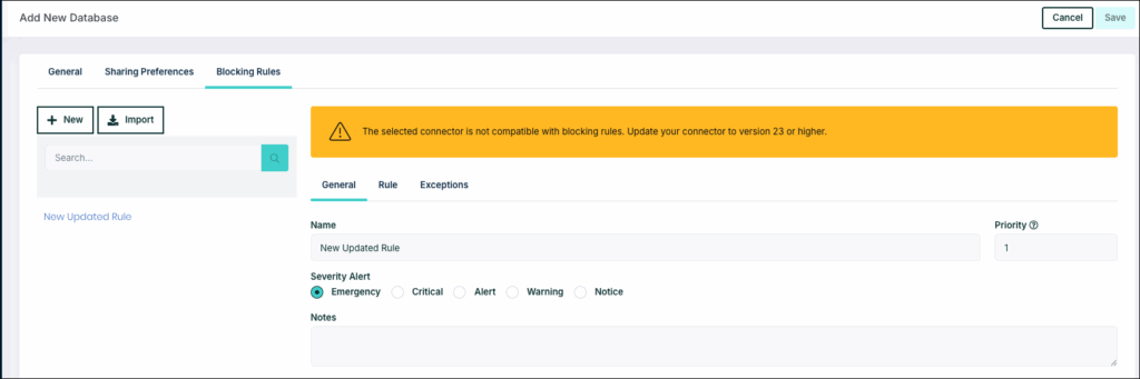 - SQL Pattern Blocking: Block SQL query patterns using standard SQL scripts or regular expressions (regex).