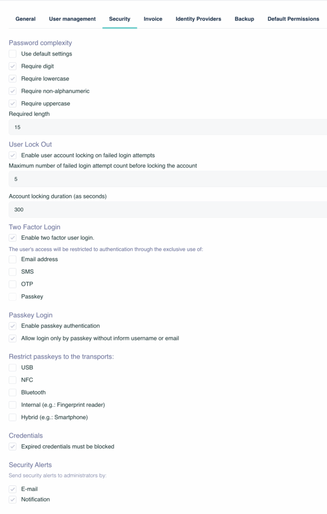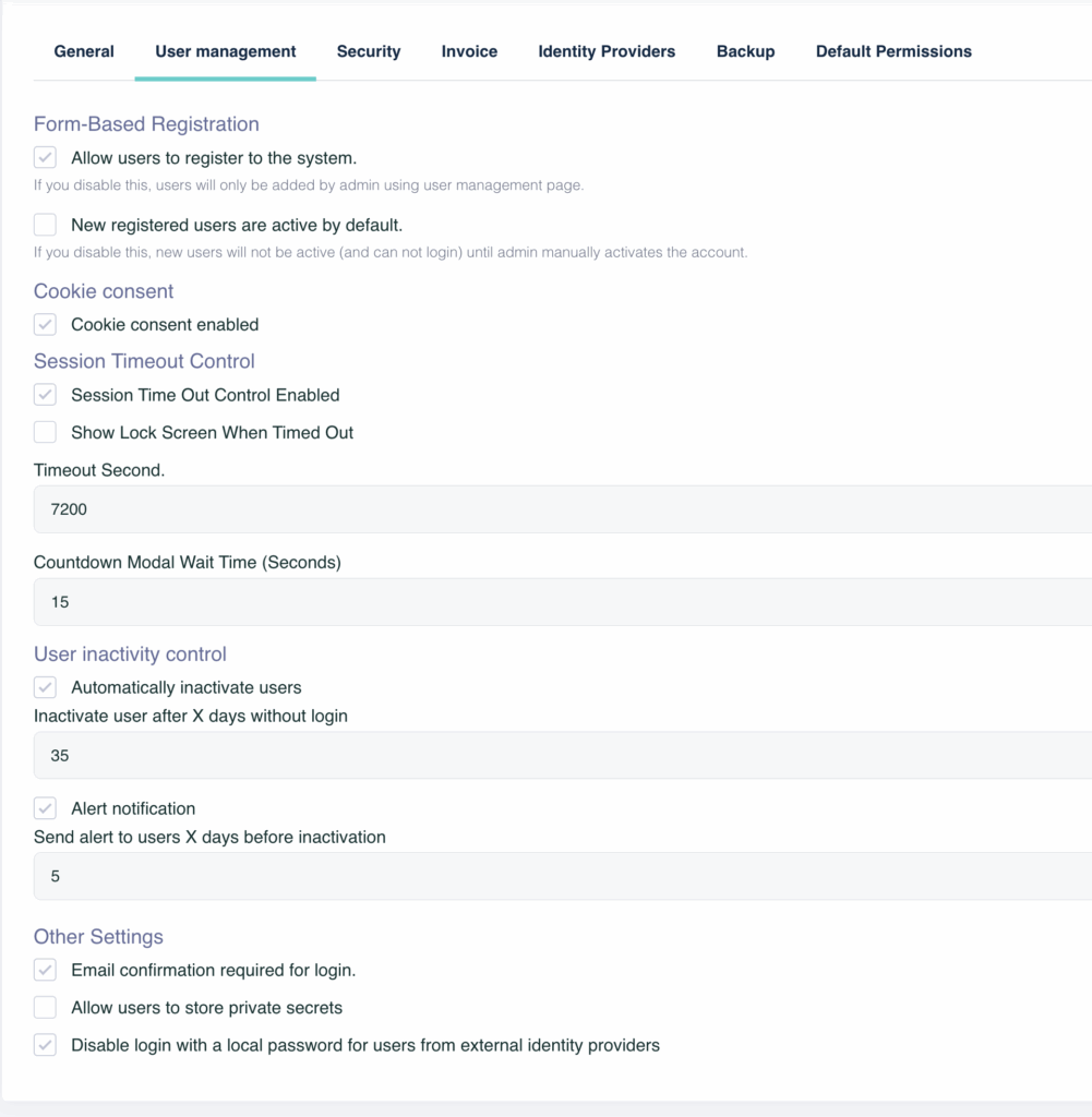 - In the User Management tab, review and select the options that best fit your organization’s needs.