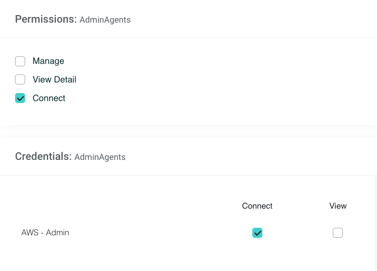 - Inside the Sharing Preferences area, select the Connect permission for the resource and the credential.