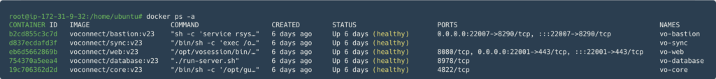 Warning: If any of the containers are not running, please contact our support team before proceeding.