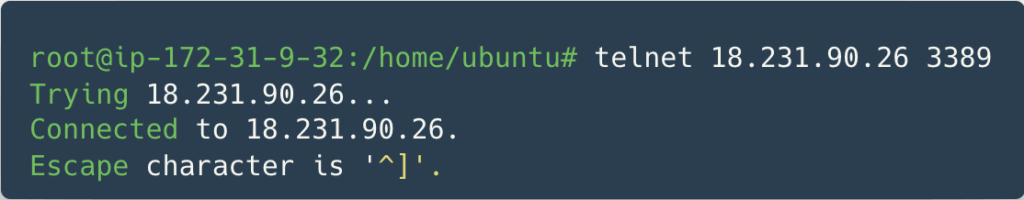 - A successful telnet will show a positive connection response, confirming that the port is open and accessible.