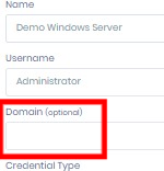 - On the “Edit Credential” screen (see example below), confirm whether the credential needs to include a domain (e.g., DOMAIN\\username or [email protected]).