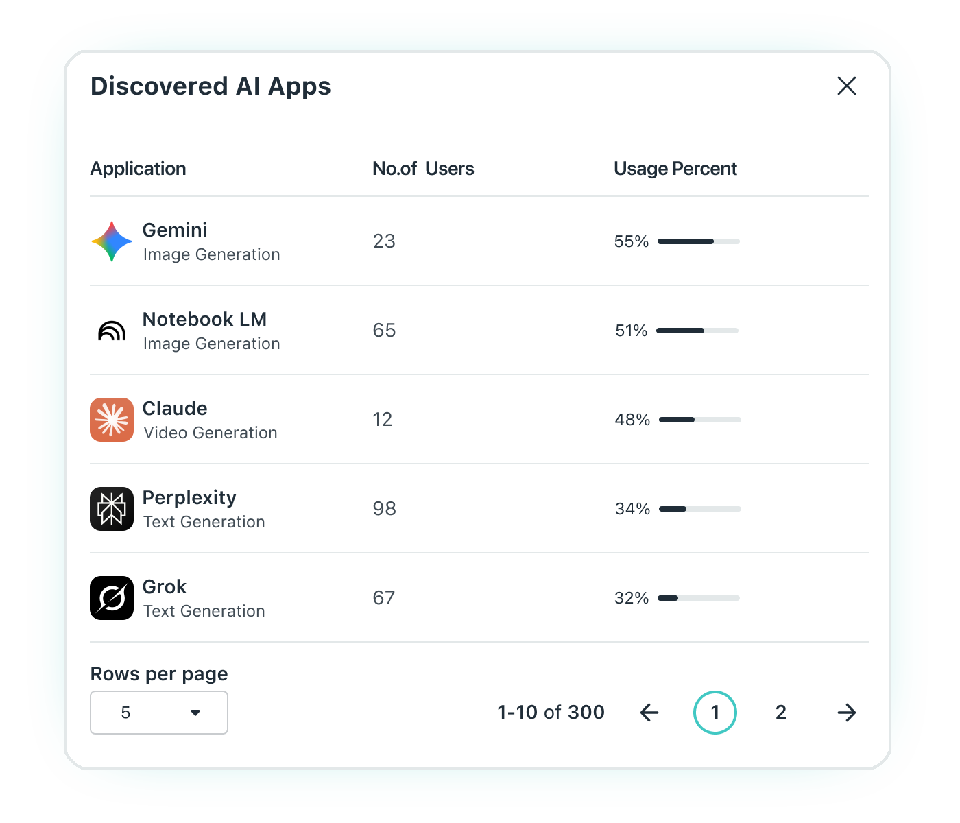 Instantly discover, track, and report on unapproved shadow AI apps and usage across your organization.